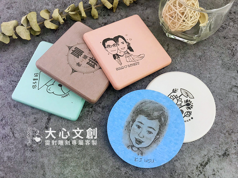 环保产品:使用原木制造的硅藻土杯垫/杯垫/个性化杯垫/客制化礼赠品/文创商品,雷射雕刻、雷射切割、印刷、设计